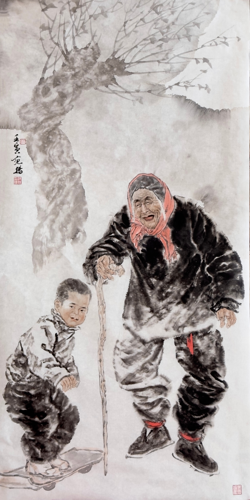 在现实题材与写意人物创作中,范扬则将视角转向生活本真,聚焦普通民众、民族同胞与日常人间百态。他以朴素真诚的笔触捕捉生活中的温情与力量,不饰雕琢、不尚浮华,让作品充满烟火气与人文温度。这种贴近生活、贴近人心的创作路径,使他的人物画摆脱了空洞的形式表达,真正扎根于现实土壤,拥有了持久而鲜活的艺术生命力。